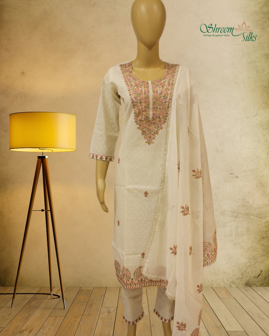 Cream with Multicolor Kashmiri Embroidery Kurta Set-525-668-1