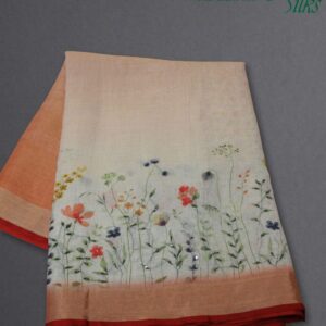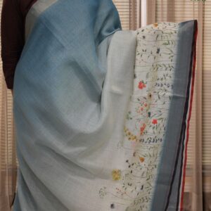 Floral Prints with Knot work & Sequence Linen Tissue Saree