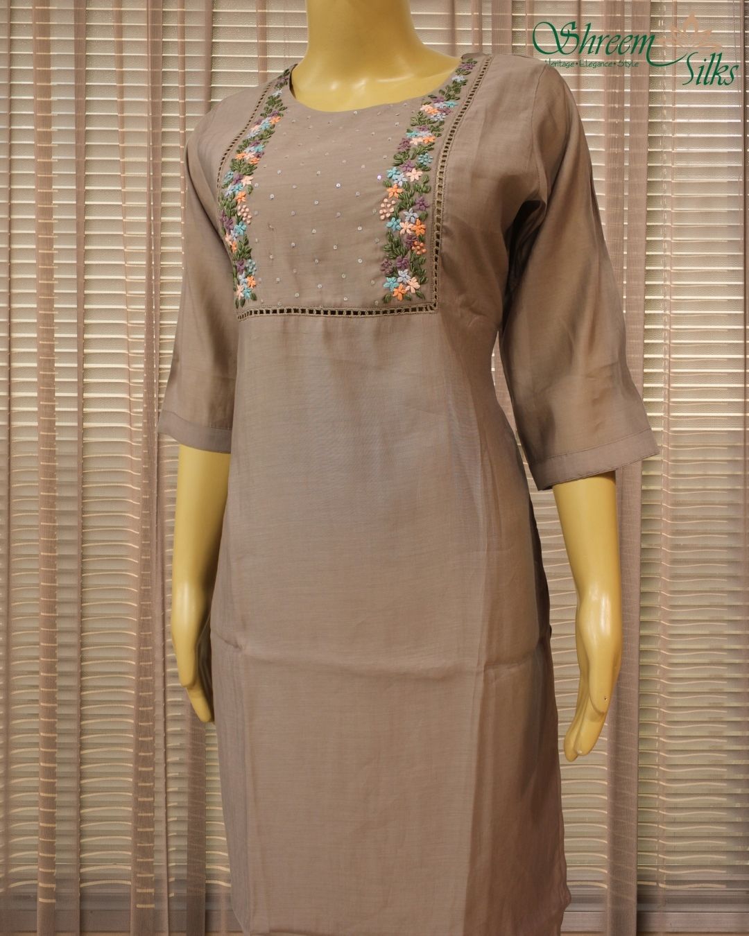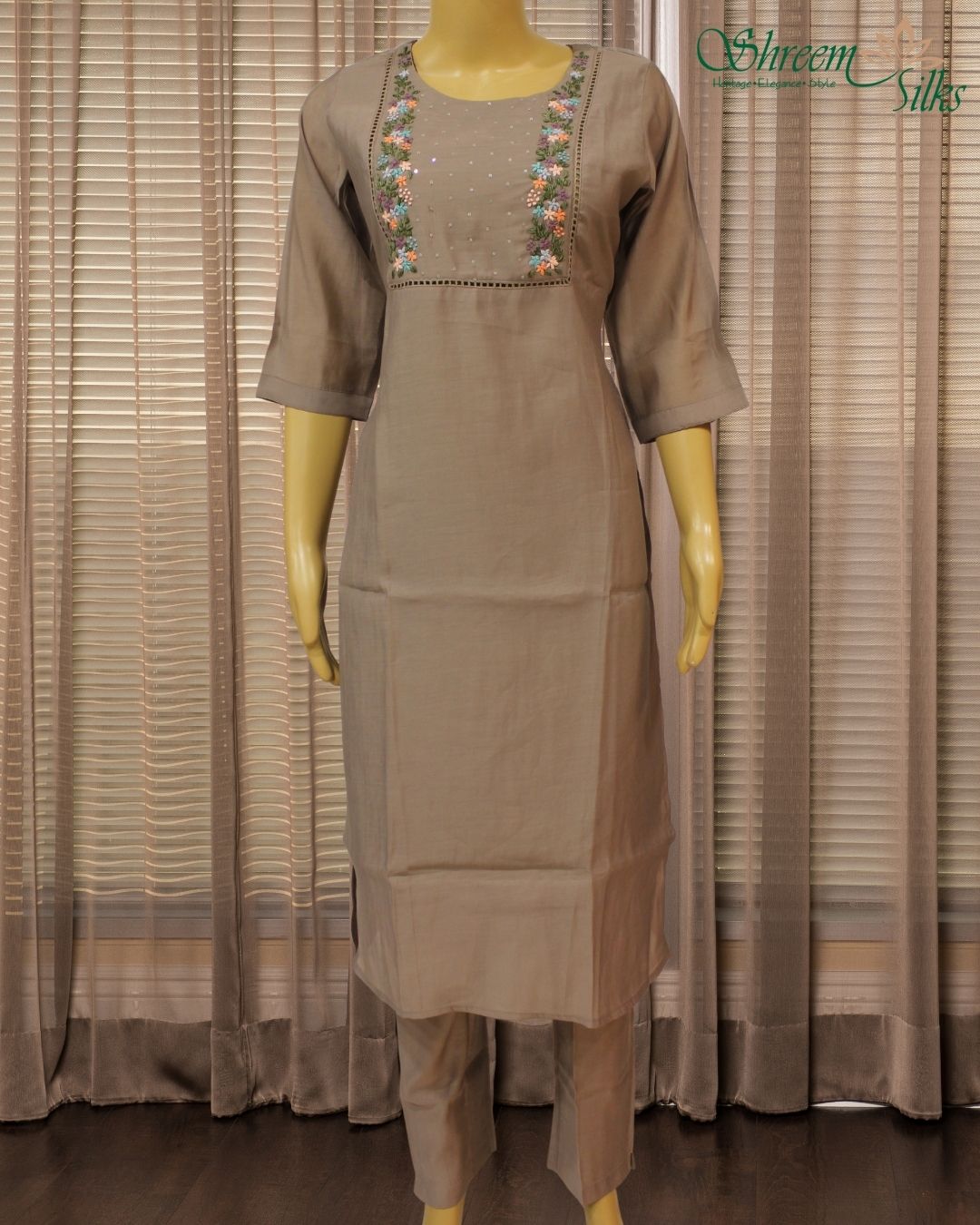 Grey with Floral Embroidey & Sequence work on Yok Mul Chanderi Cord Set