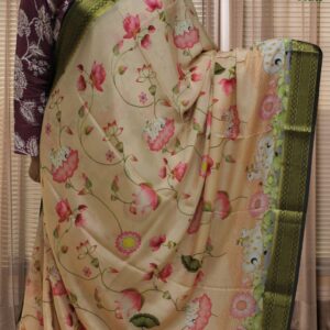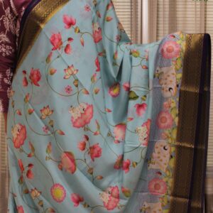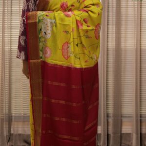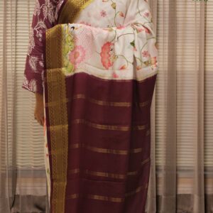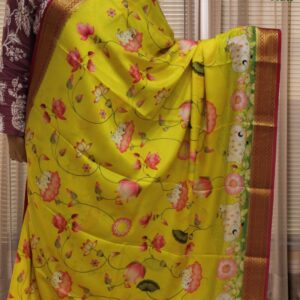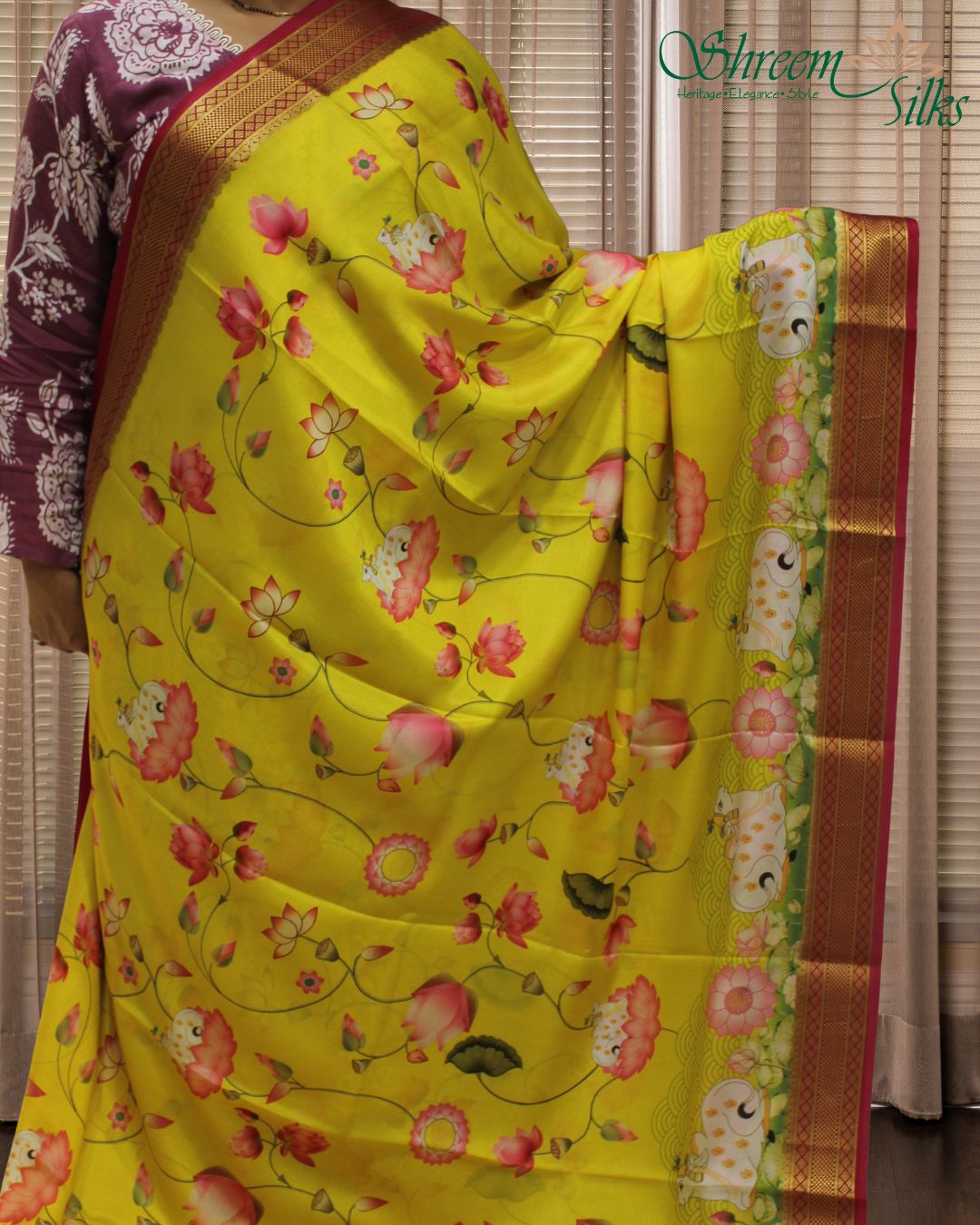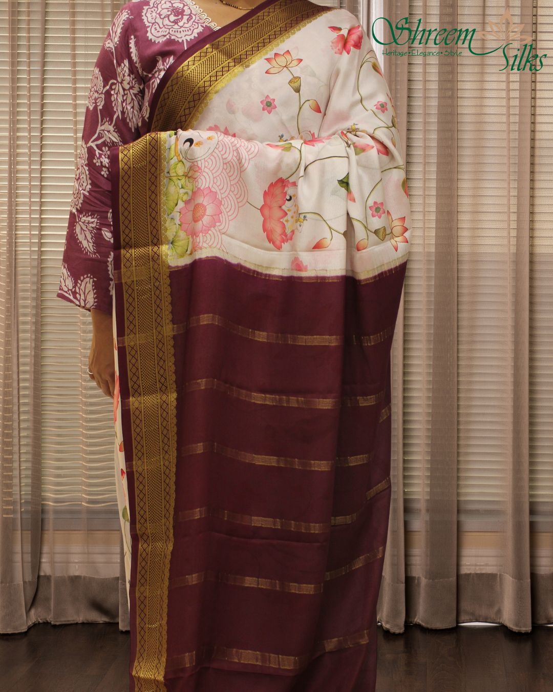 Lotus Pichwai Prints Pure Mysore Crepe Silk Saree
