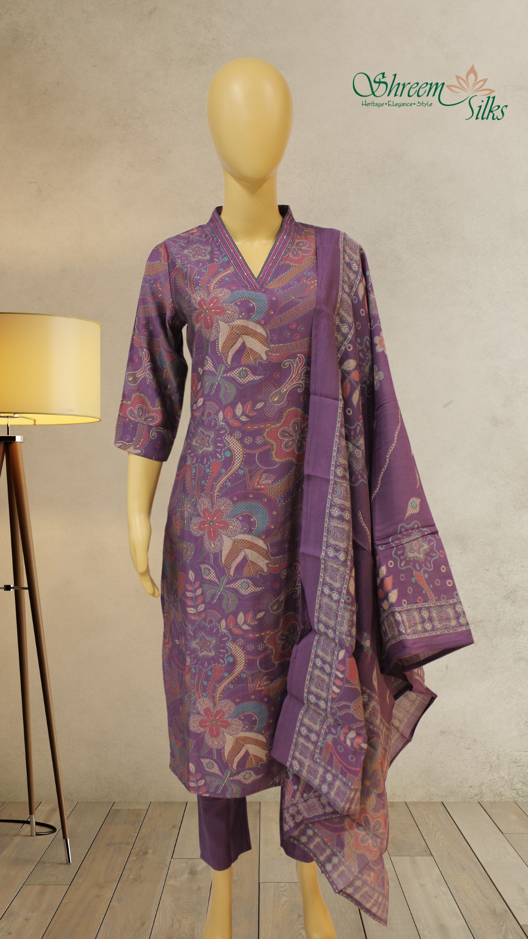 Baby Pink with Multicolor Floral Prints with Embroidery Work Kurta Set