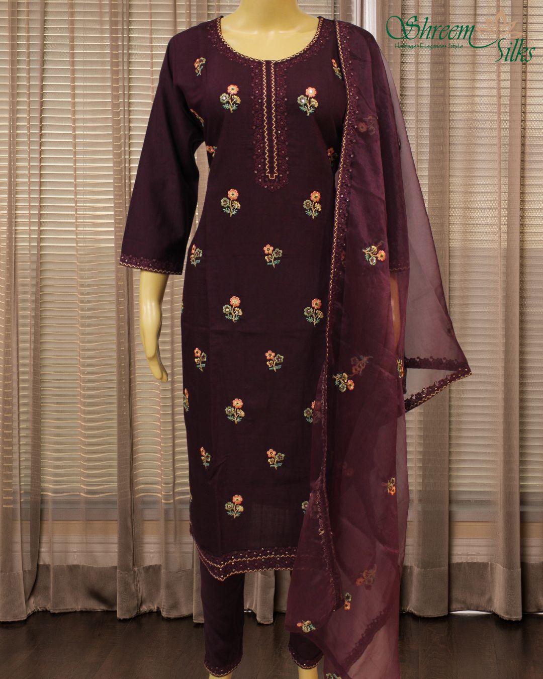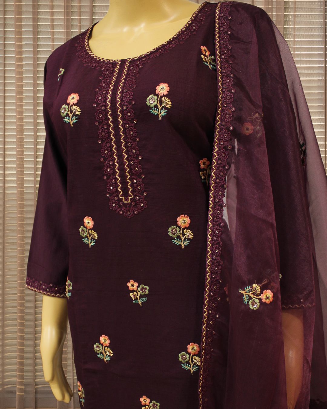 Winish Purple with Floral Embroidery & Sequence Kurta Set