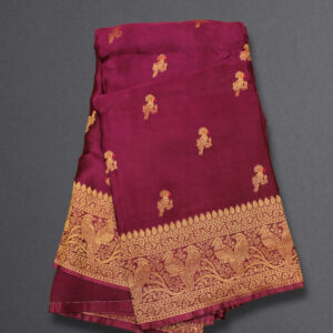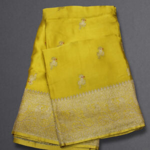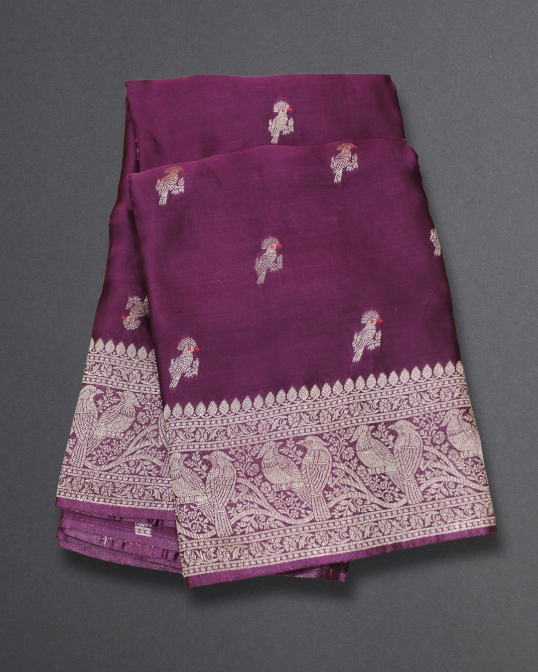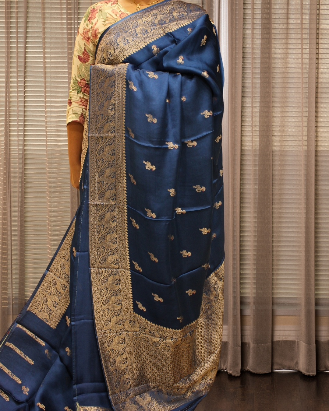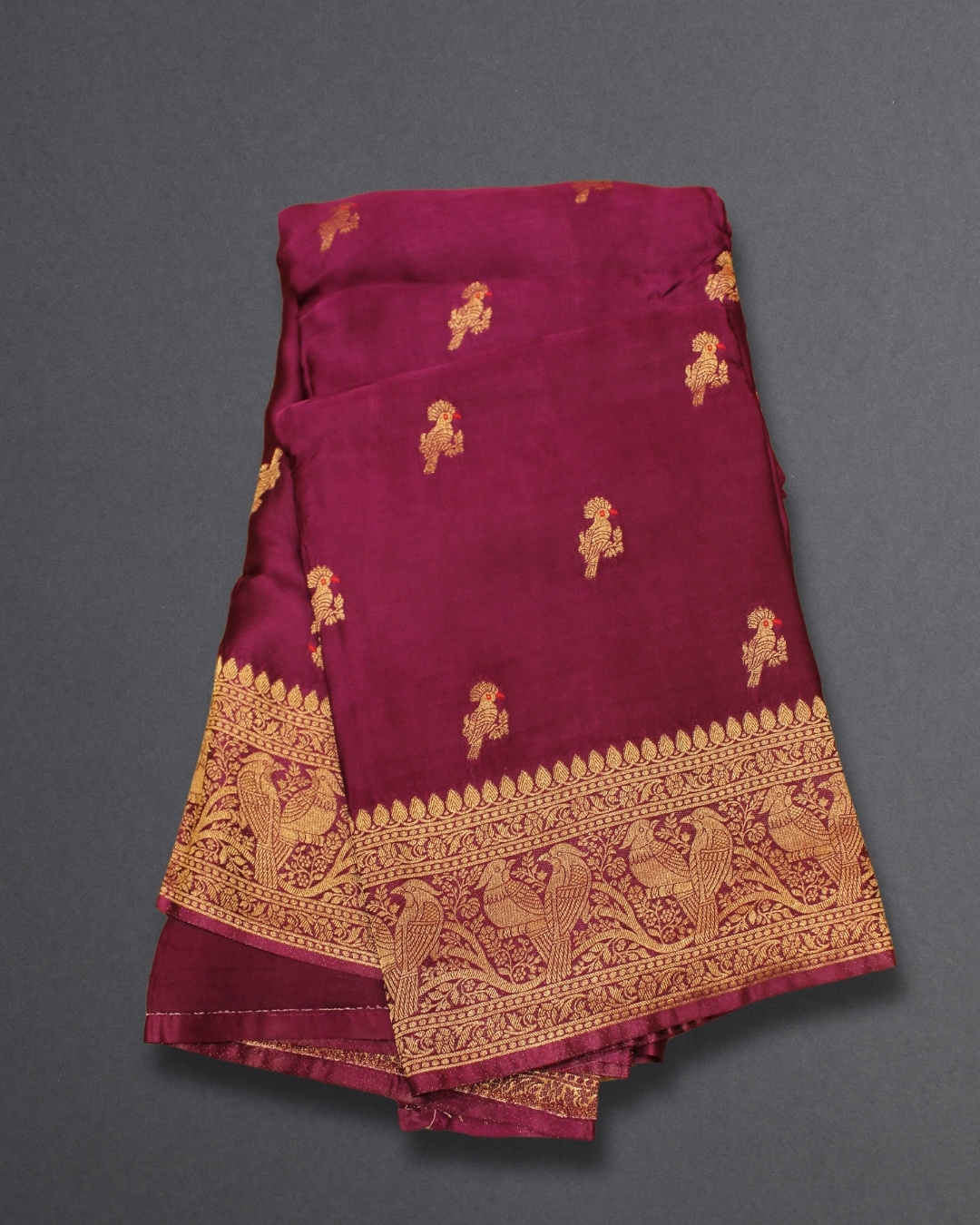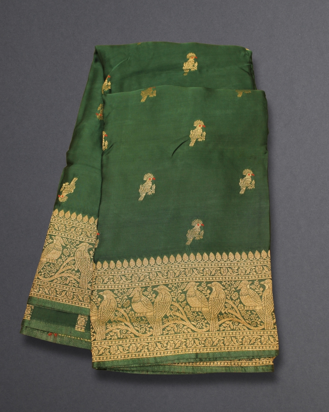 Zari Woven Bird Motifs with Rich Pallu Banaras Satin Saree