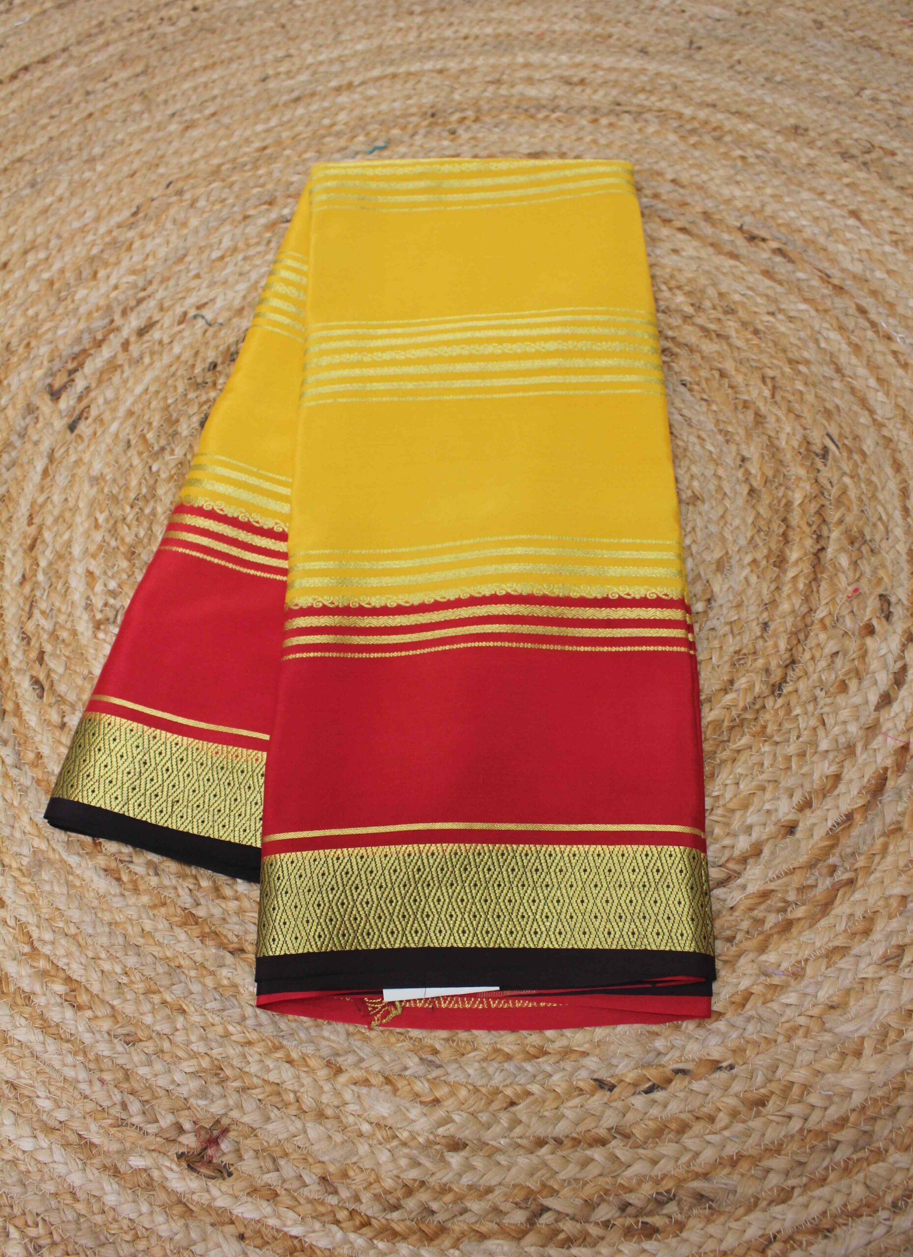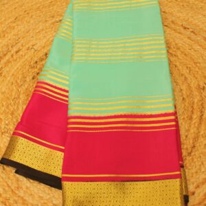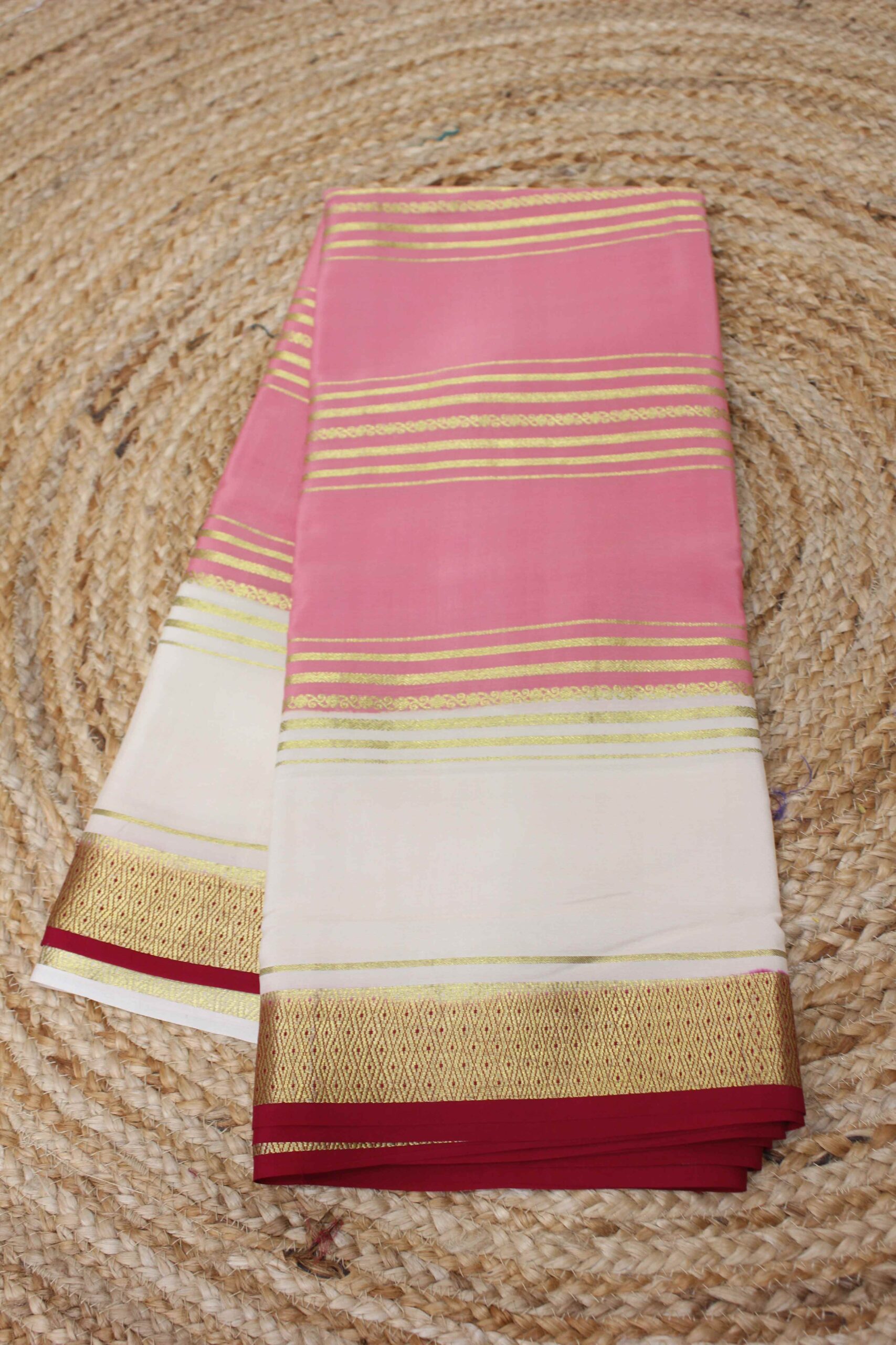 Zari Woven Horizontal Stripes 3D Pure Mysore Crepe Silk Saree