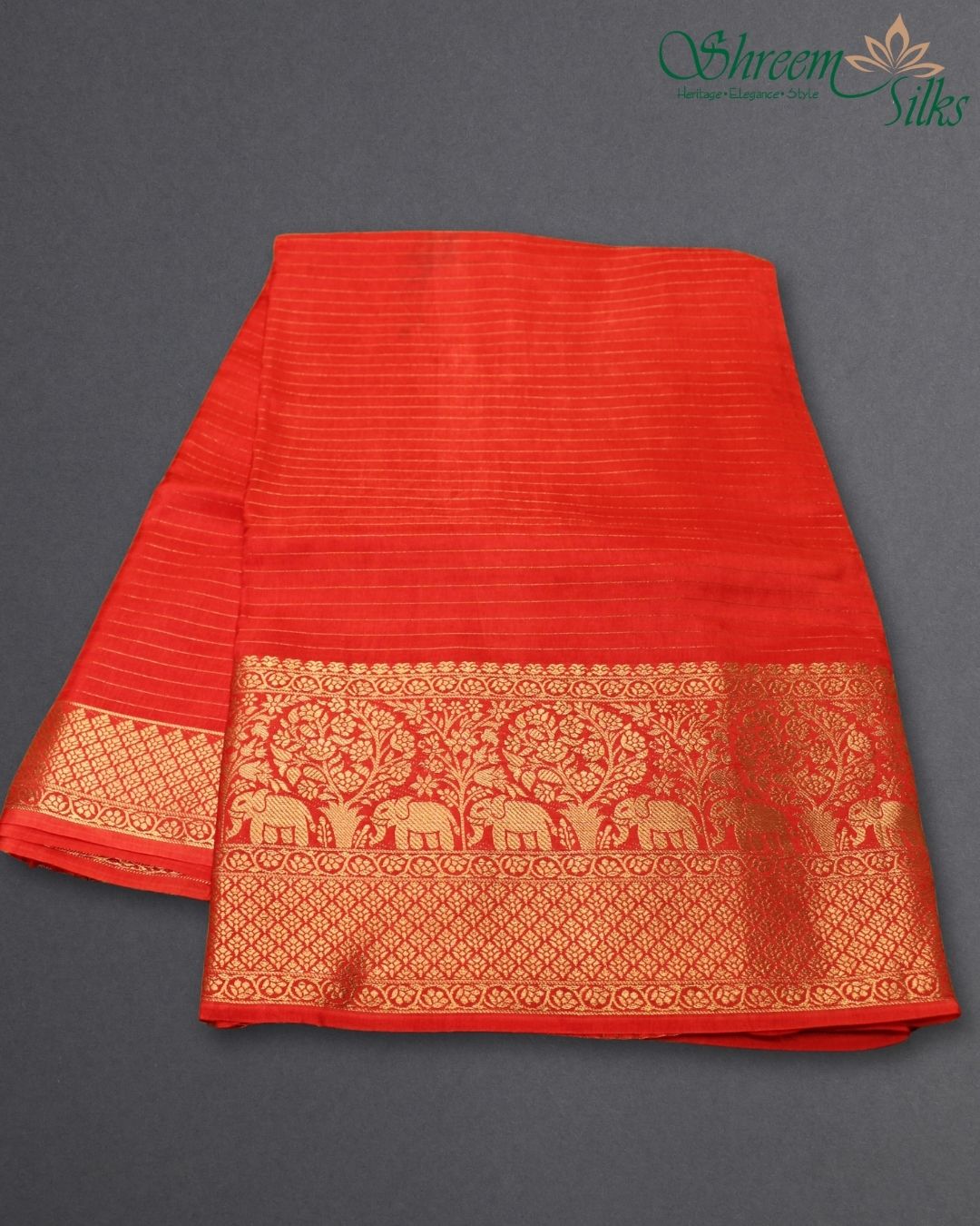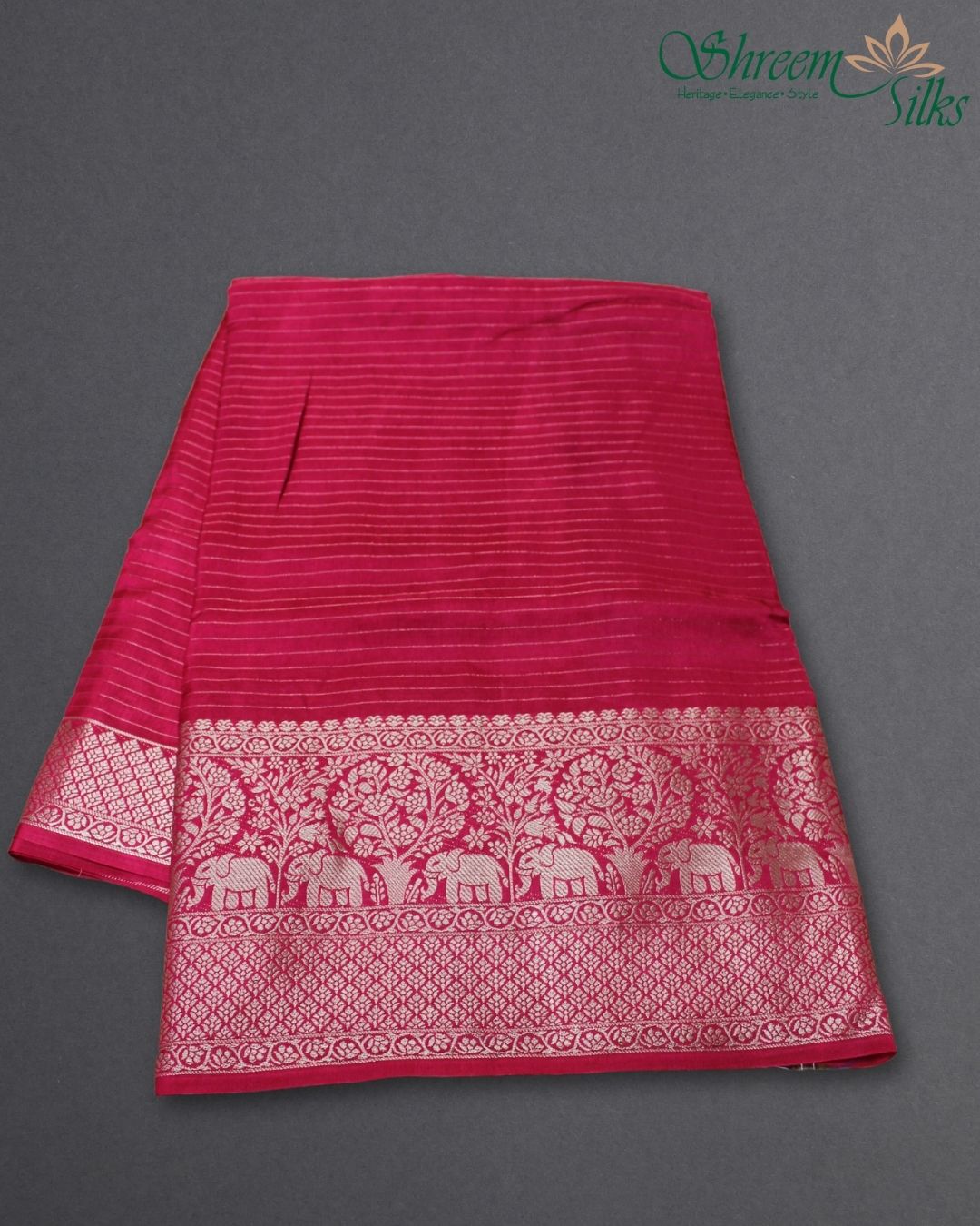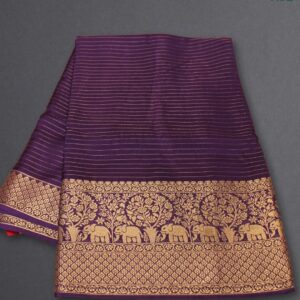 Zari Woven Horizontal Stripes with Rich Border Russian Silk Saree